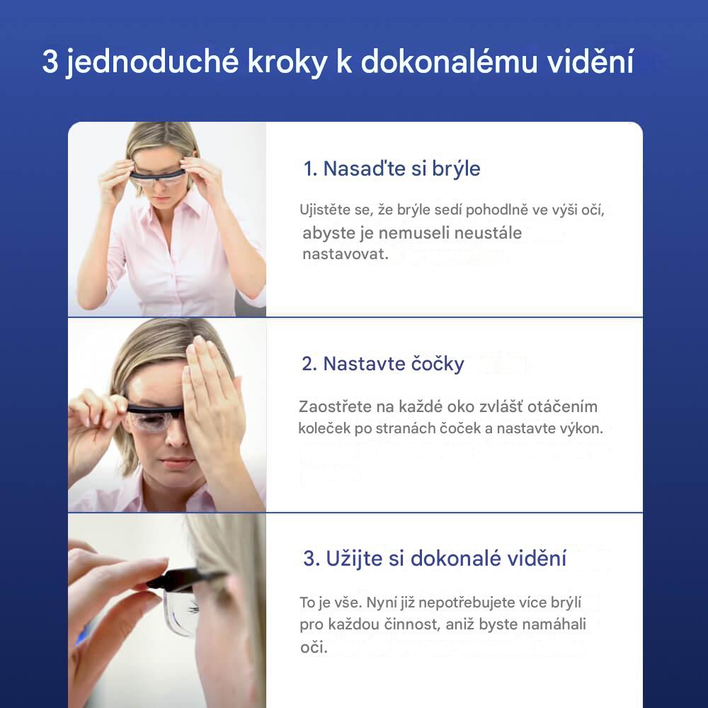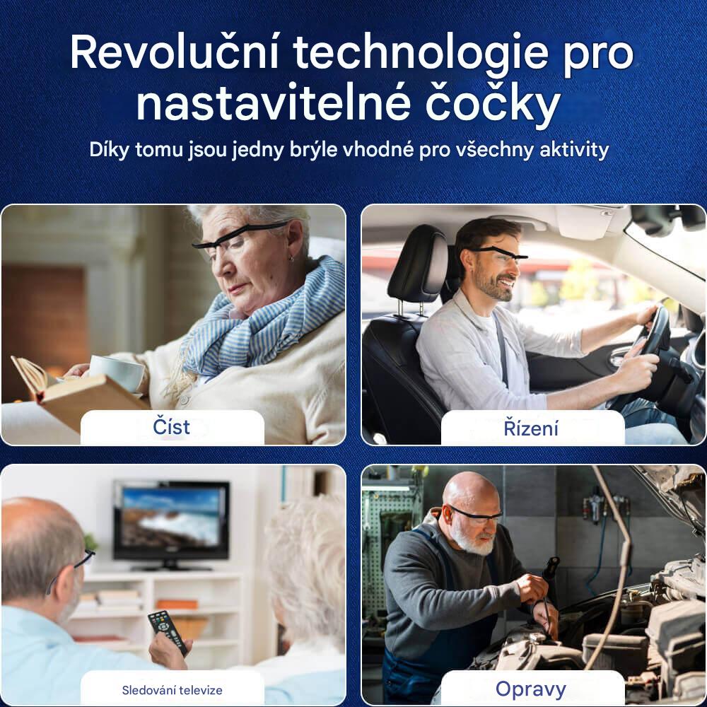 Díky samonastavitelným čočkám vidíte na blízko i na dálku, aniž byste museli měnit brýle. Komfort a pohodlí v jednom produktu.